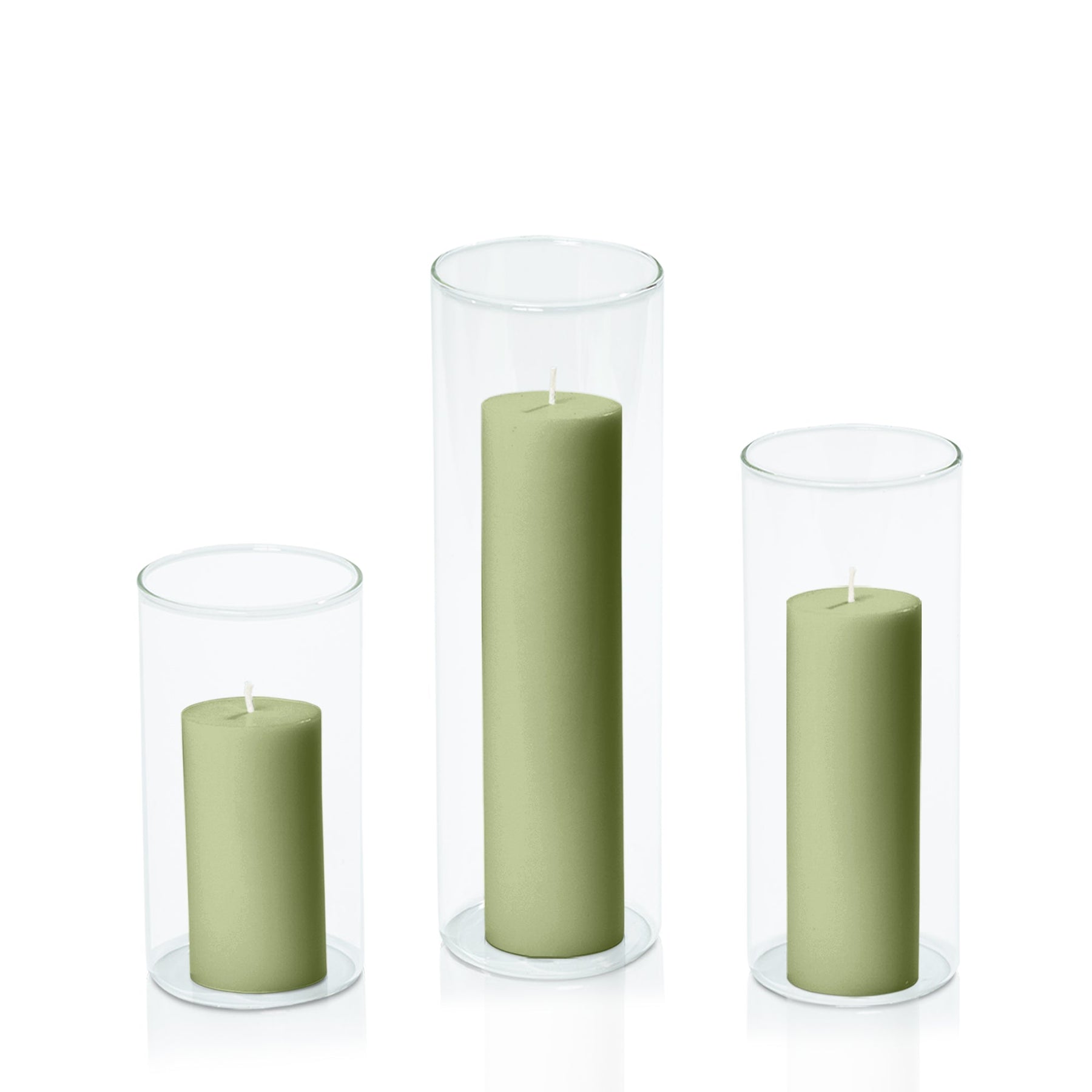 Matcha 5cm Pillar in 8cm Glass, Med - Set of 6