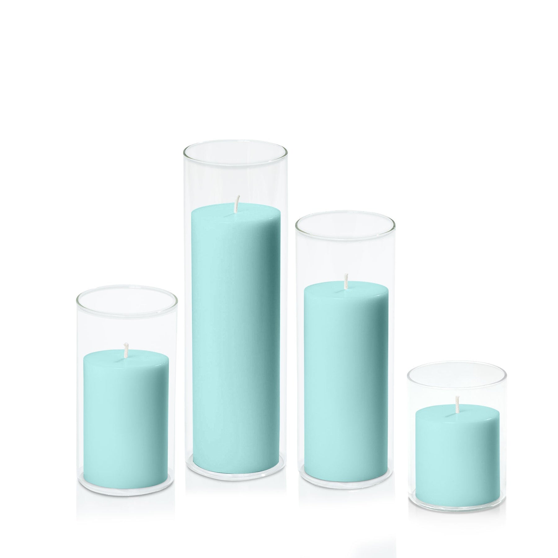 Pastel Teal 7cm Pillar in 8cm Glass, Sm - Set of 6