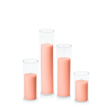 Peach 5cm Pillar in 5.8cm Glass, Med - Set of 6