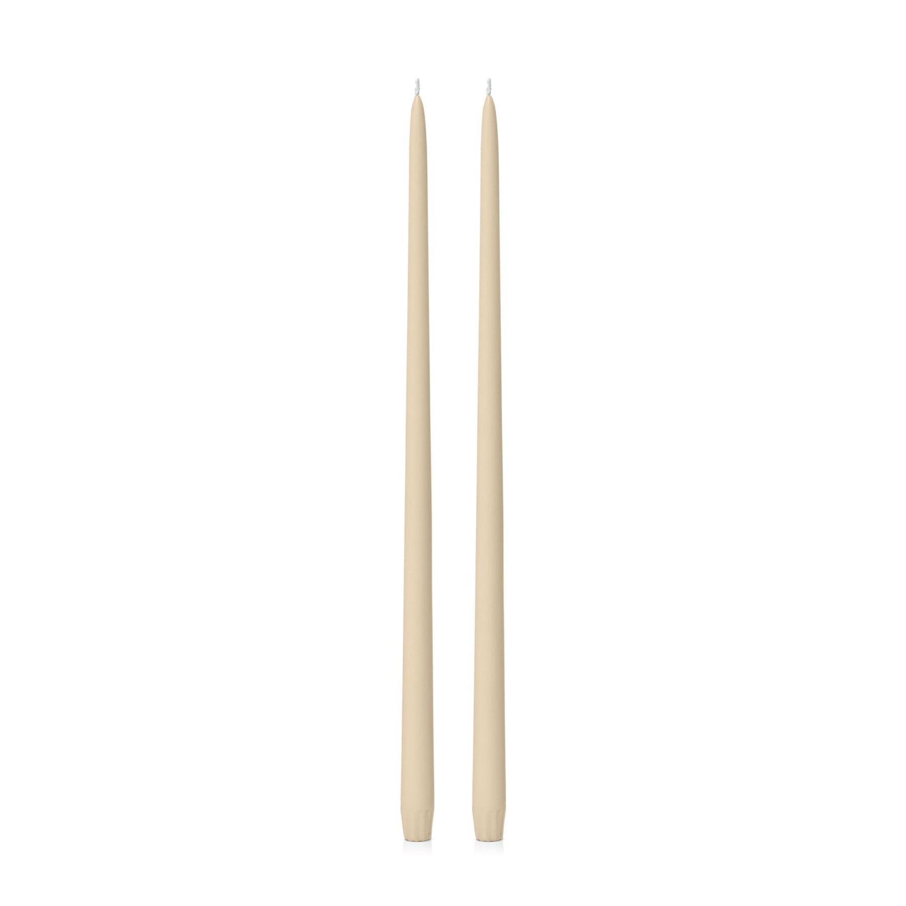 Elevate your ambience with our Hand-Poured Unscented Taper Candles. Standing at 45 cm tall with a 2 cm diameter, they are crafted from renewable plant-based wax, dyed naturally, and features a braided cotton, lead-free wick. Enjoy a clean, long-lasting burn.