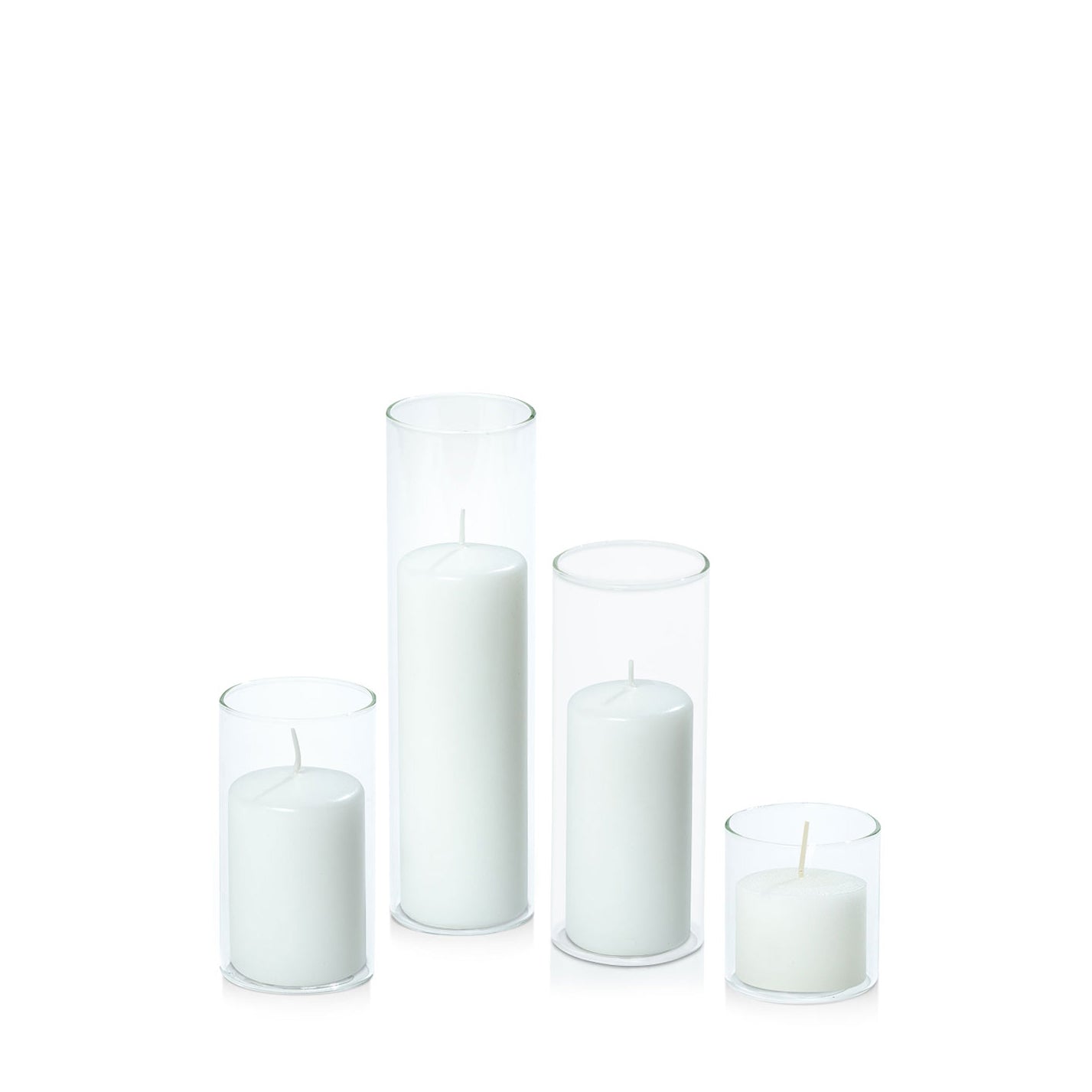White 5cm Event Pillar in 5.8cm Glass, Sm - Set of 6