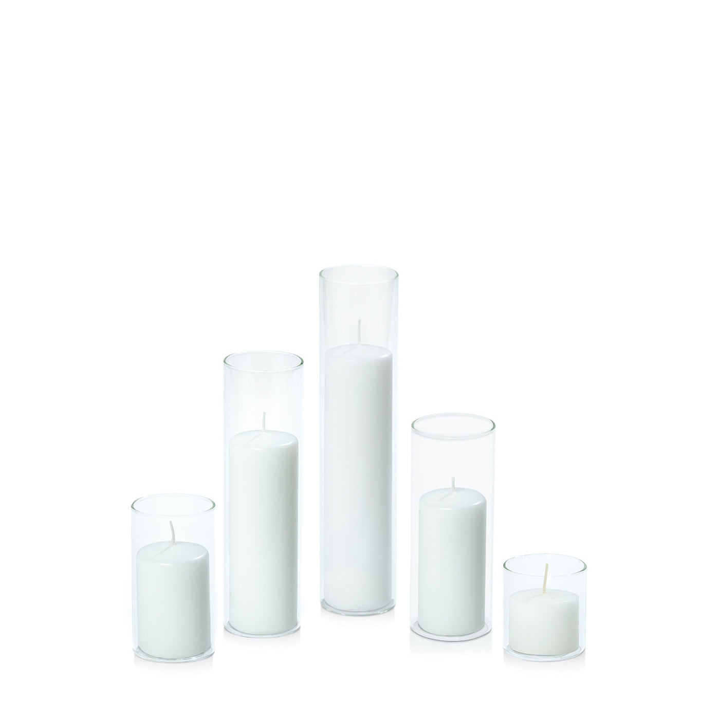 White 5cm Event Pillar in 5.8cm Glass, Sm - Set of 6