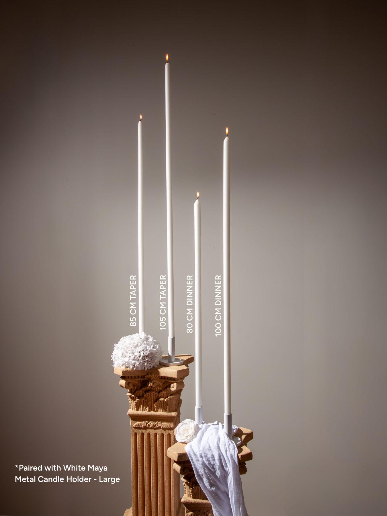 Pair them with our refined candle holders for stability and style, or mix and match colours, heights, and textures to build a layered, captivating display that truly elevates your décor.