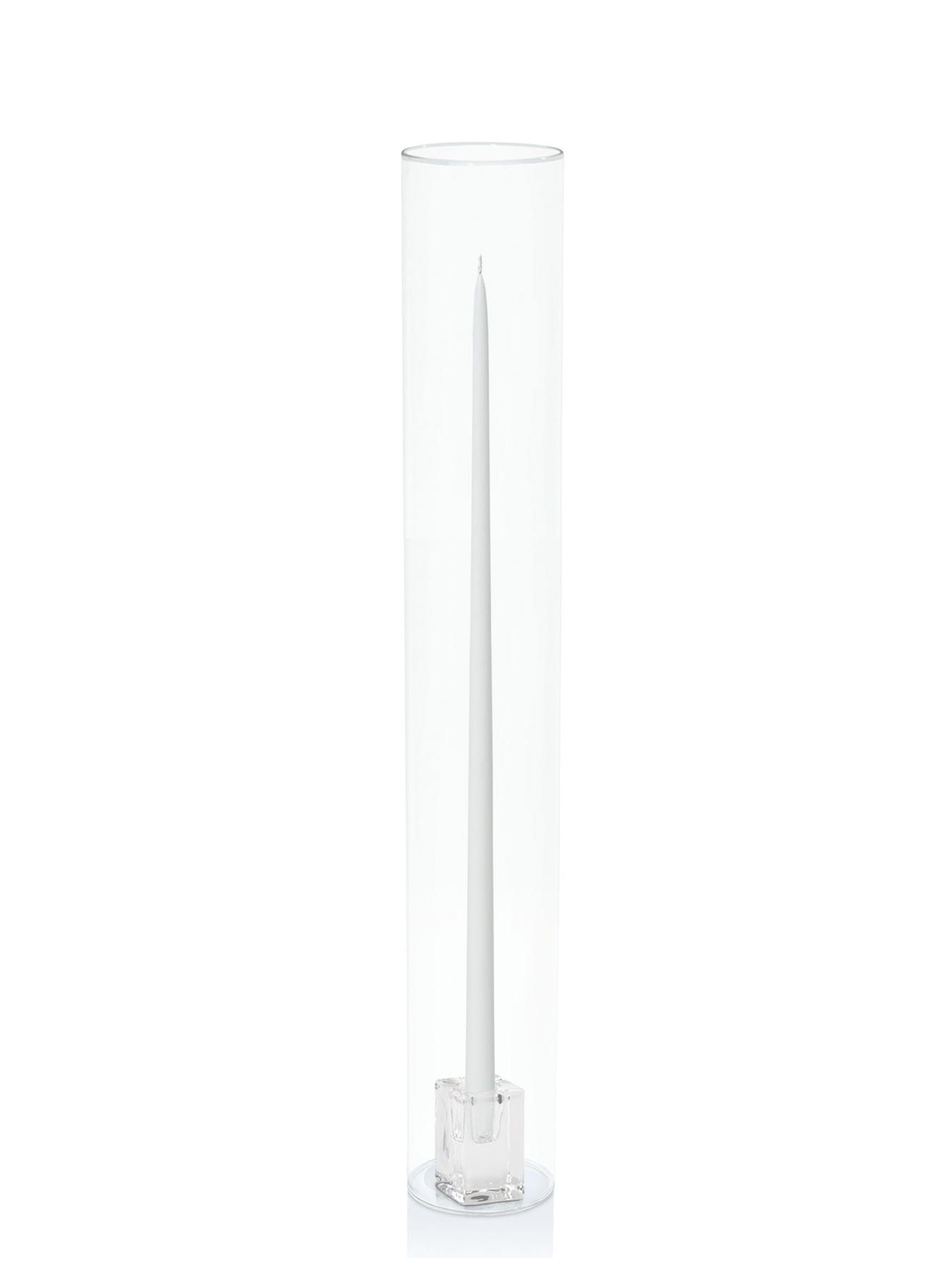 White 55cm Taper Candles with Glass Cube Holders and Glass Sleeves - Set of 6
