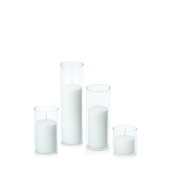 White 5cm Event Pillar in 5.8cm Glass Set - Sm