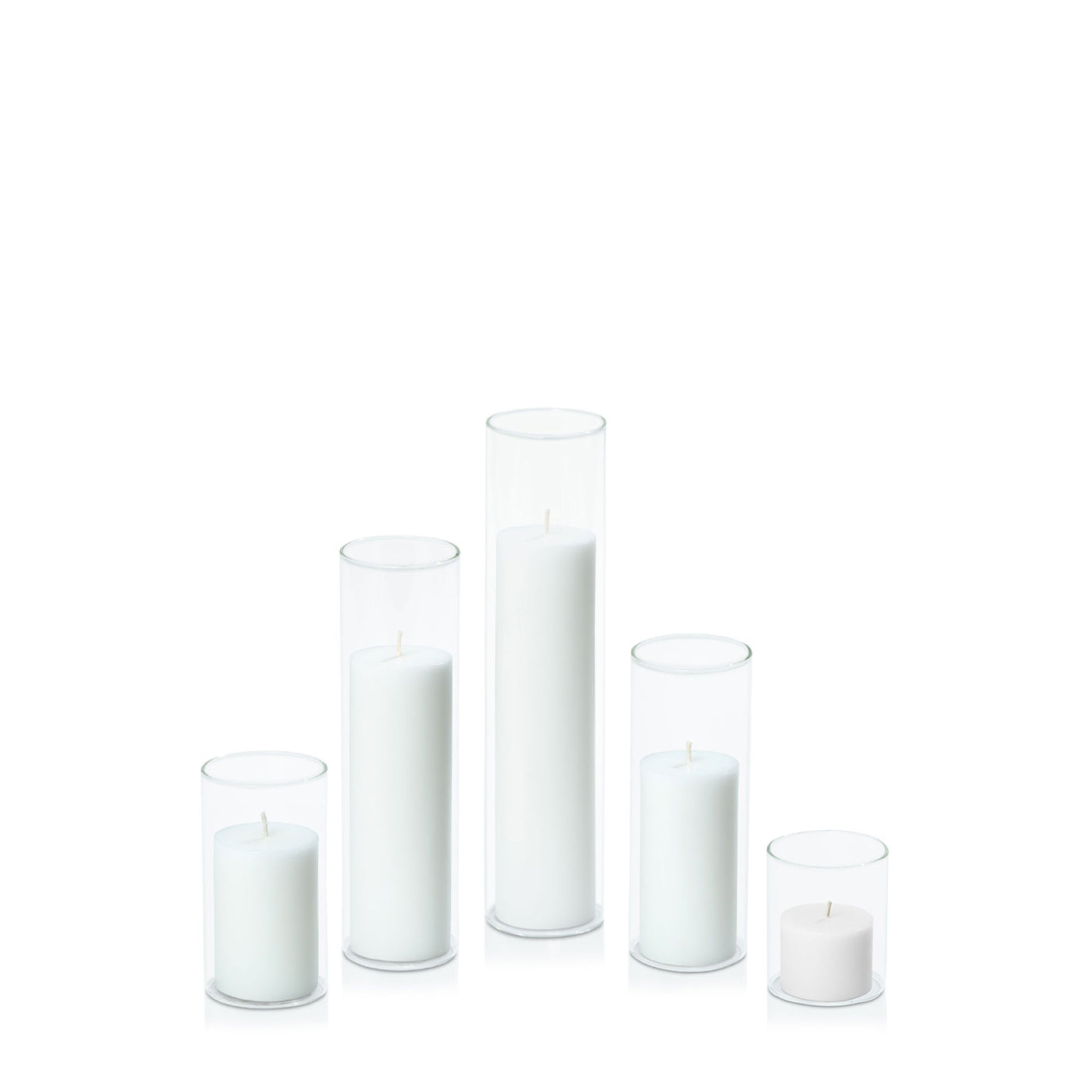 White 5cm Pillar in 5.8cm Glass Set - Sm
