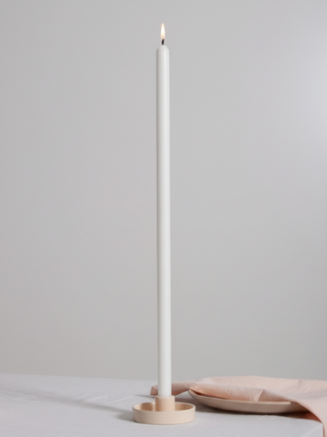 Maximise the visual charm of our Dinner Candles by effortlessly incorporating them into your dining experience. Combine them with our chic candle holders for a secure foundation and a hint of sophistication. Play around with various colours, sizes, and textures to craft a dynamic visual statement, or introduce an additional touch of refinement by integrating our glass sleeves.