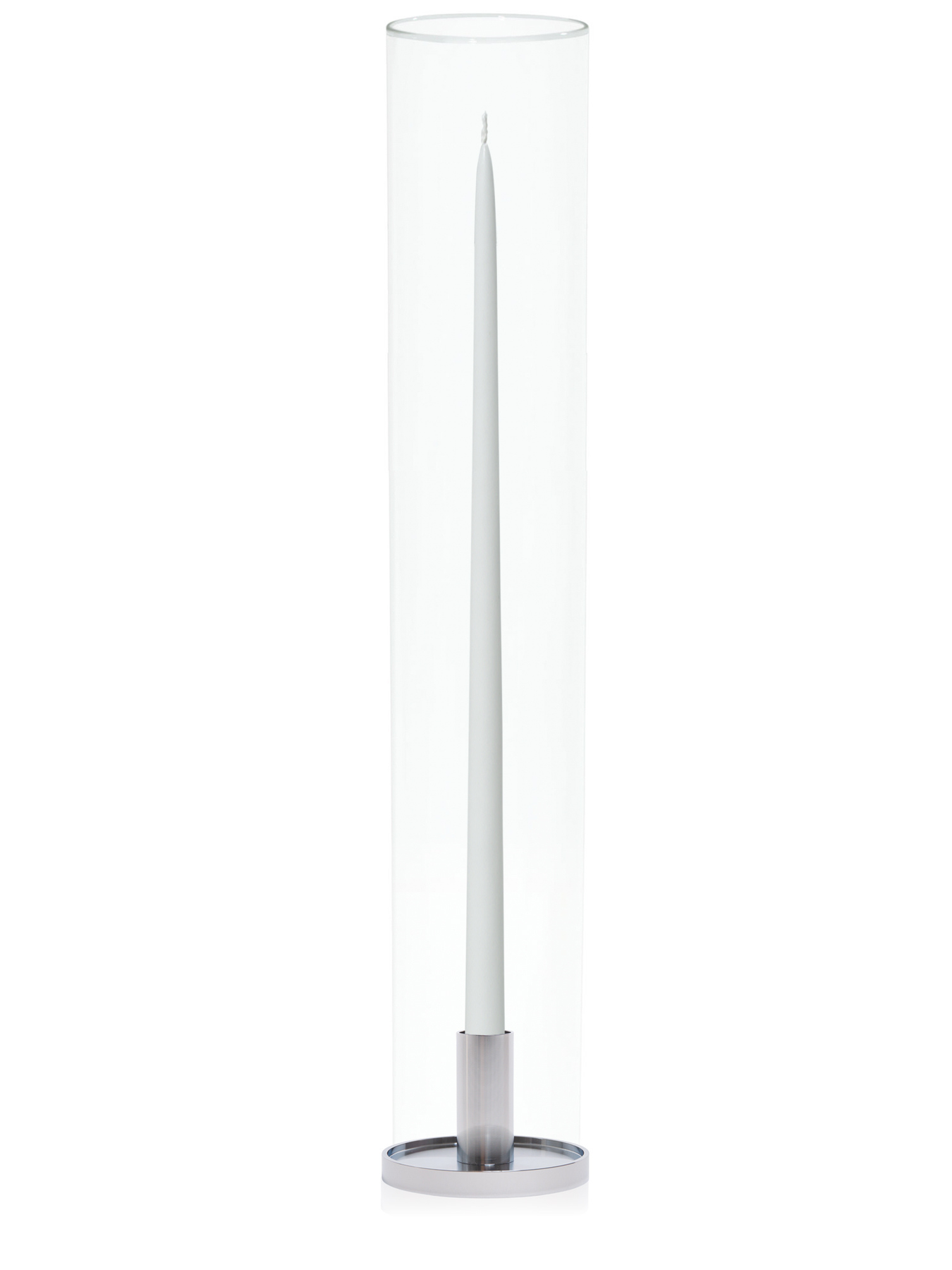 White 65cm Taper Candles with Medium Silver Maya Metal Holders and Glass Sleeves - Set of 6