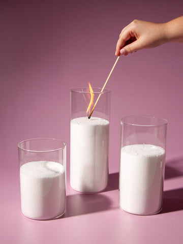 - For a fresh appearance, add more candle sand to your desired height and insert a new wick. Alternatively, pour any unused wax into its original packaging or an airtight container for future use.