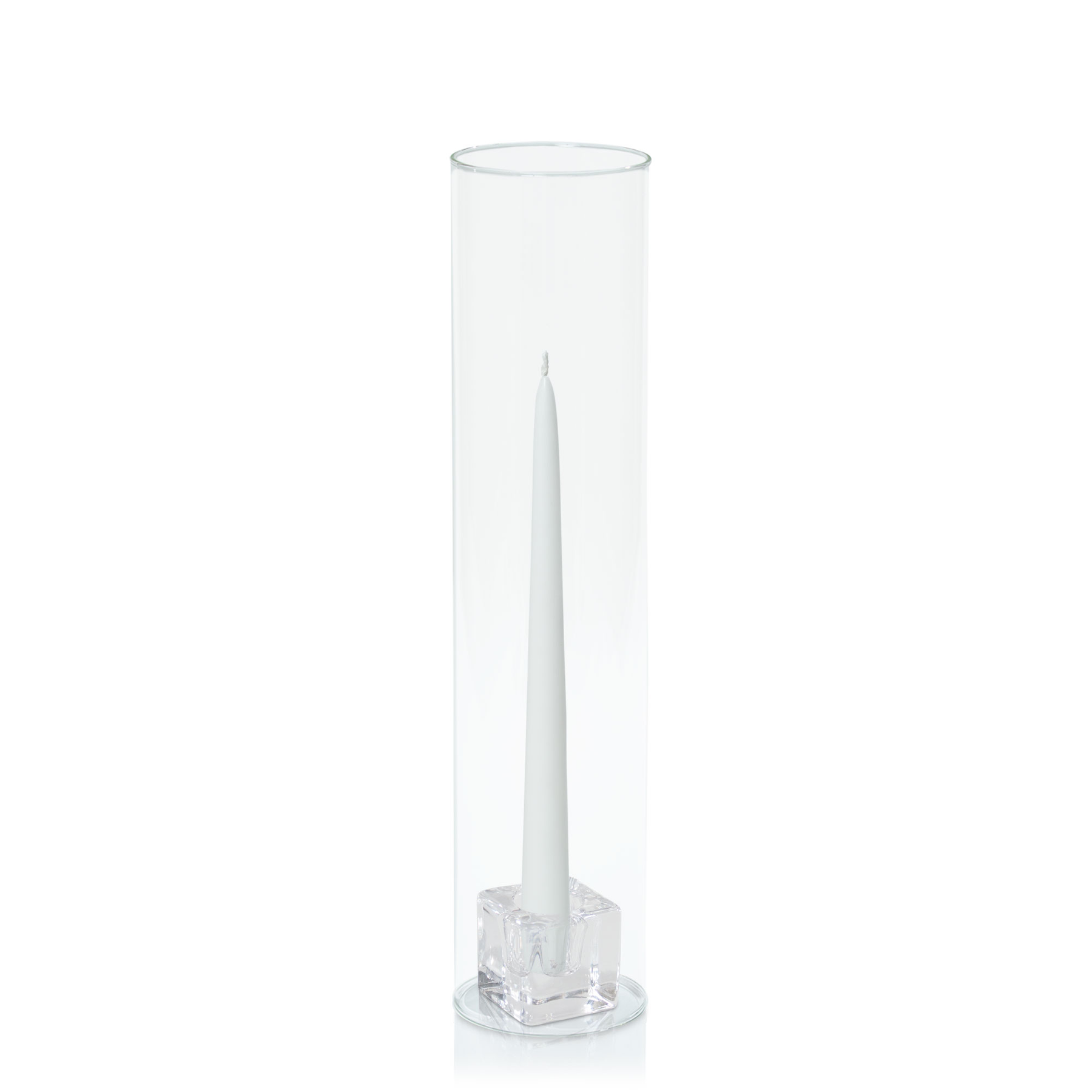 White 25cm Taper Candles with Small Glass Holders and Sleeves - Set of 12