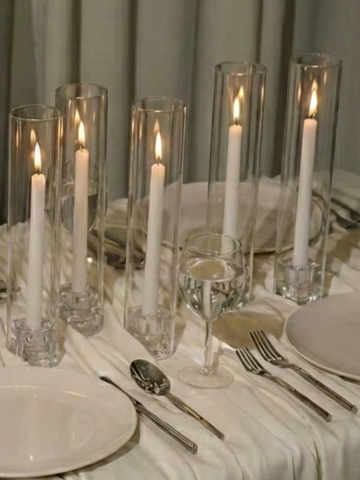 Glass sleeves are perfect for venues with enclosed flame policies and outdoor weddings, offering a protective barrier that shields the flame from wind while meeting safety requirements. They help keep candles burning beautifully and safely without compromising on style or ambience.