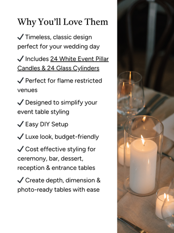 White Event Pillar Candles & Glass Wedding Bundle - Large