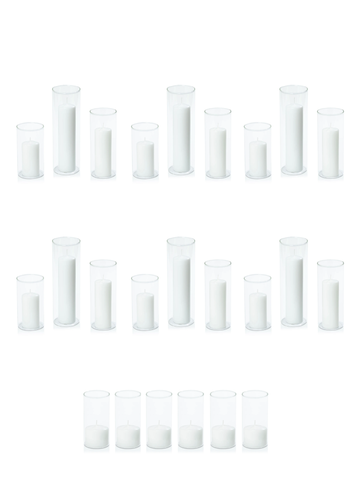 White Event Pillar Candles & Glass Wedding Bundle - Medium