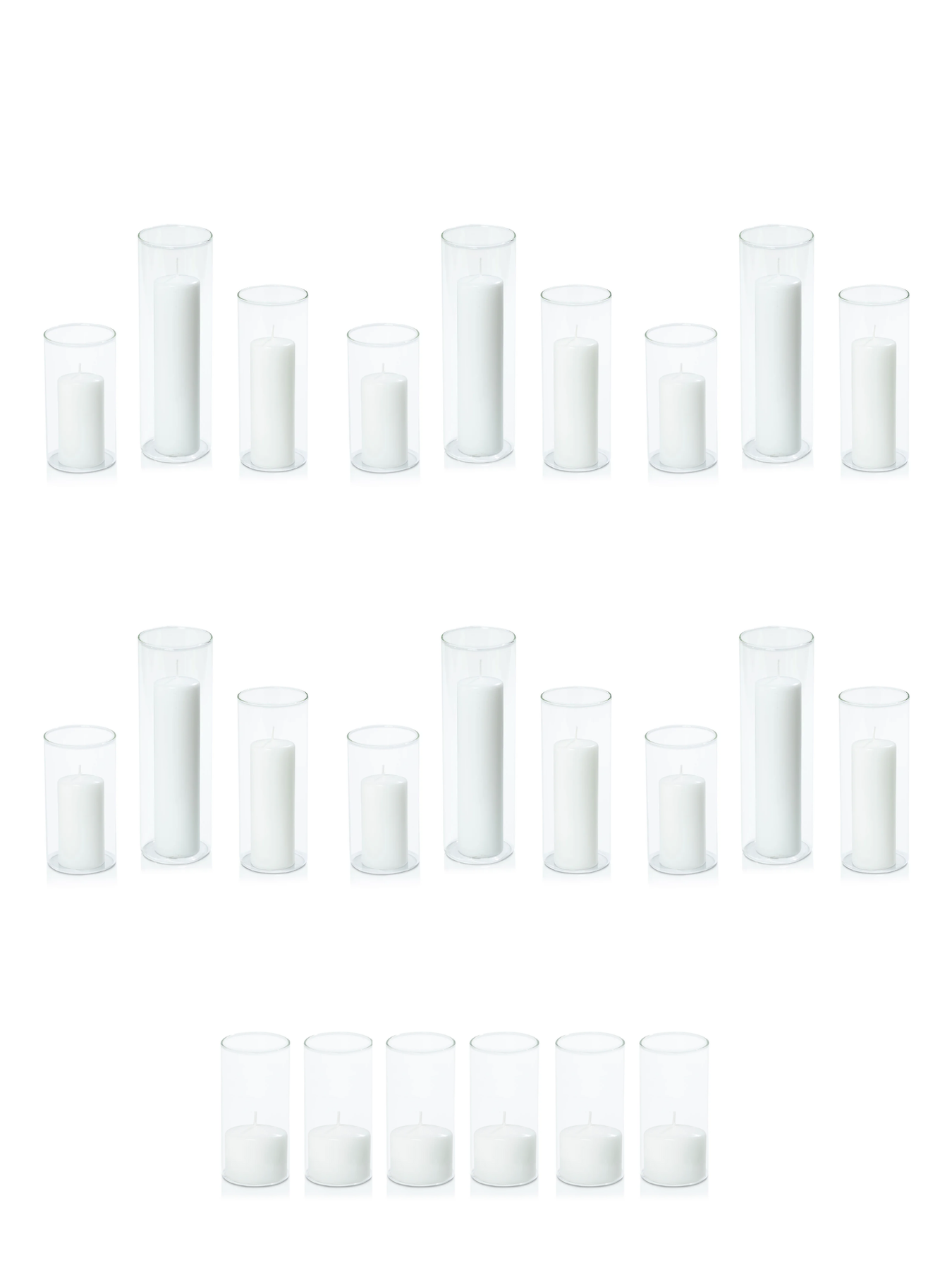 Total of 24 Event Pillar Candles & 24 Glass Cylinders.
