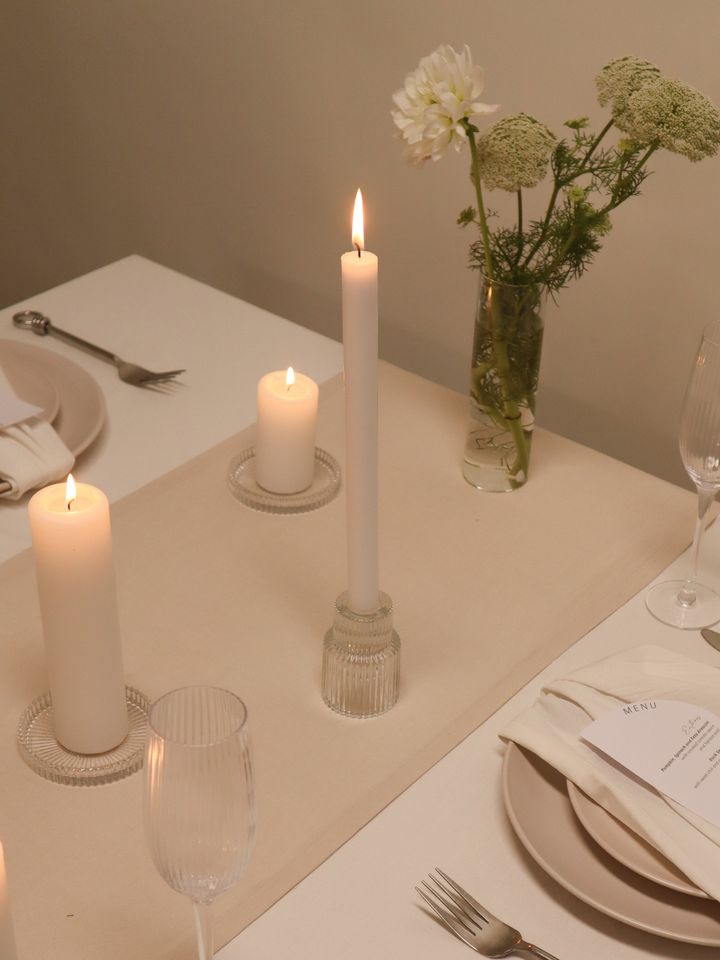 - Fluted Candles: Fluted candles are not suitable for use in glass cylinders. Use them on a pillar plate instead.