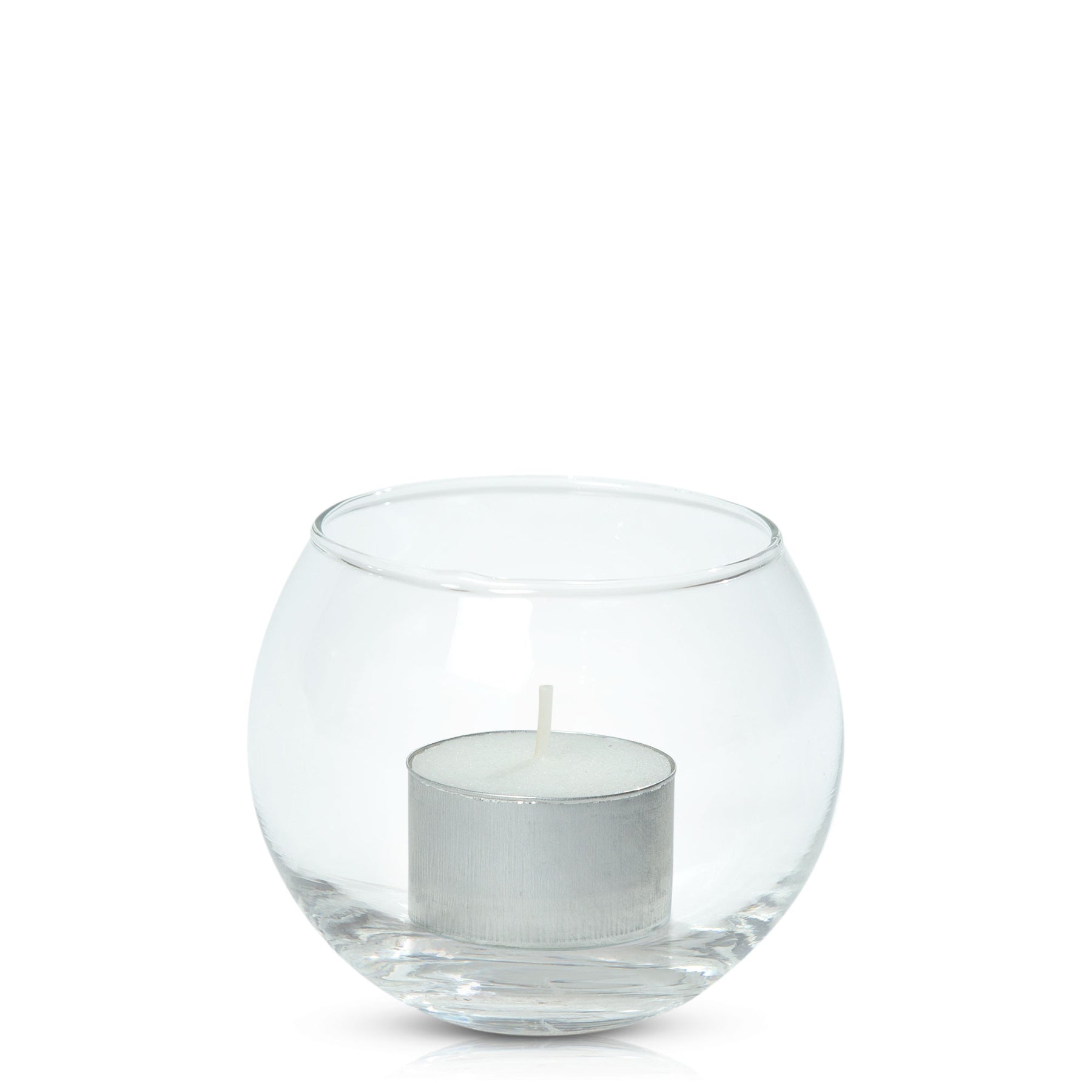 Combining an event Tealight with a timeless glass fishbowl holder, this ensemble delivers durability and longevity with a clean, enduring burn. Encased within the glass votive, the flame will remain safely contained.